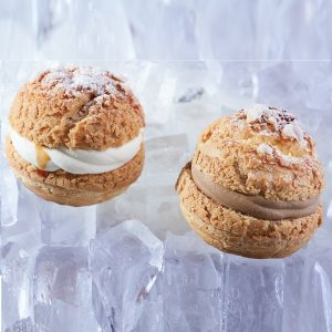 少し小ぶりの食べやすい大きさのシュー生地に2種類の個性の異なる味わいのソフト&素材をサンドしました。